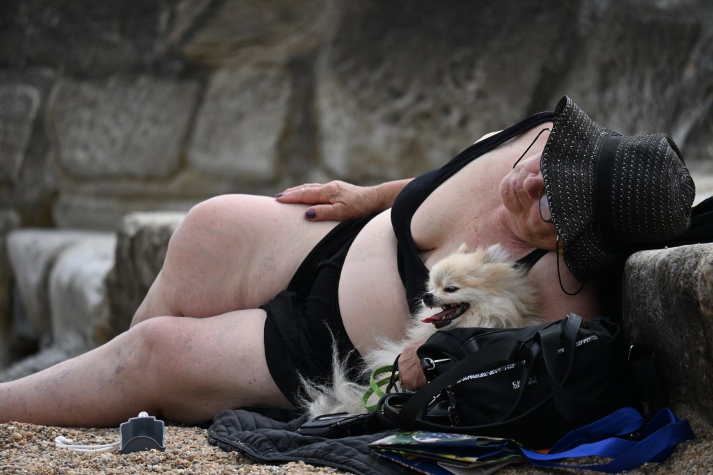 It’s not just about dogs in big cities. What’s really on my mind is this image of an elderly lady and her Pomeranian. In it, I feel the spirit of modern times: an older lady with a modern little dog, wearing a bikini, no man by her side, a casual hat, and her favorite bag. She radiates a sense of contentment that I deeply envy. This image is, for me, a mirror of our times: women can wear whatever they want, at any age. The dog, her loyal and overly eager but happy companion at her side, complements the scene perfectly.