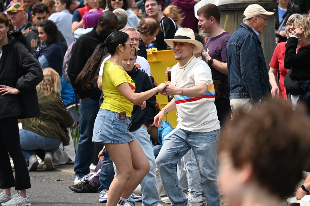 Ich stand am Straßenrand mit meiner Kamera und wartete darauf, dass es losgeht. Mein Ziel: schöne Bilder. Doch schon nach wenigen Minuten bemerkte ich: Ich war gar nicht richtig da. Und die Menschen um mich herum auch nicht. Alle hatten ihre Handys in der Hand. Niemand klatschte, niemand tanzte. Die Darsteller*innen blickten nicht in Gesichter, sondern in eine Wand aus Handykameras.